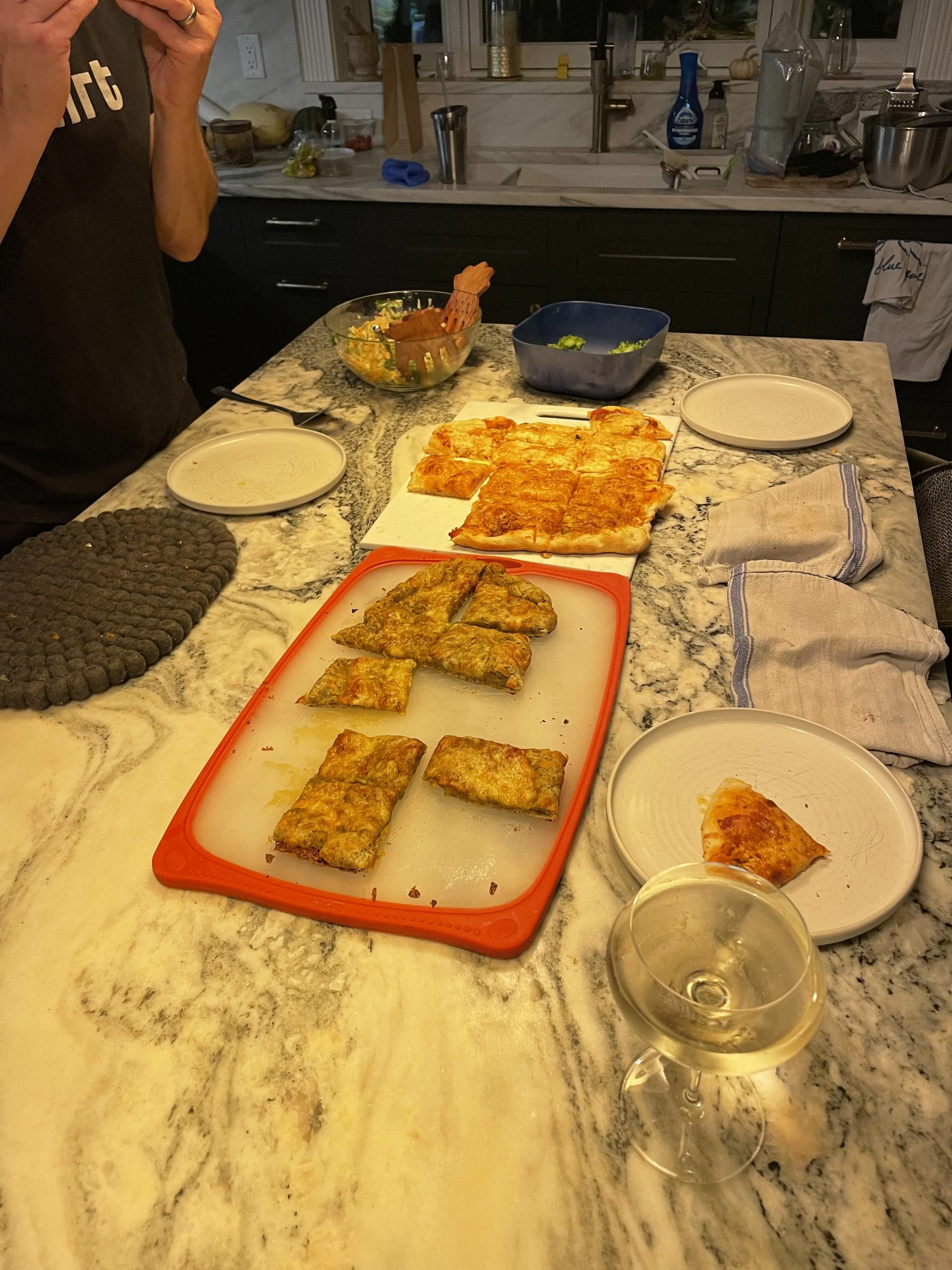 Sunday- Homemade pizzas. We did a dough off between the trader joes garlic herb dough and the pizza dough from our local JP Pace, both were winners but the Pace’s one may be my new favorite. I may never make dough again.