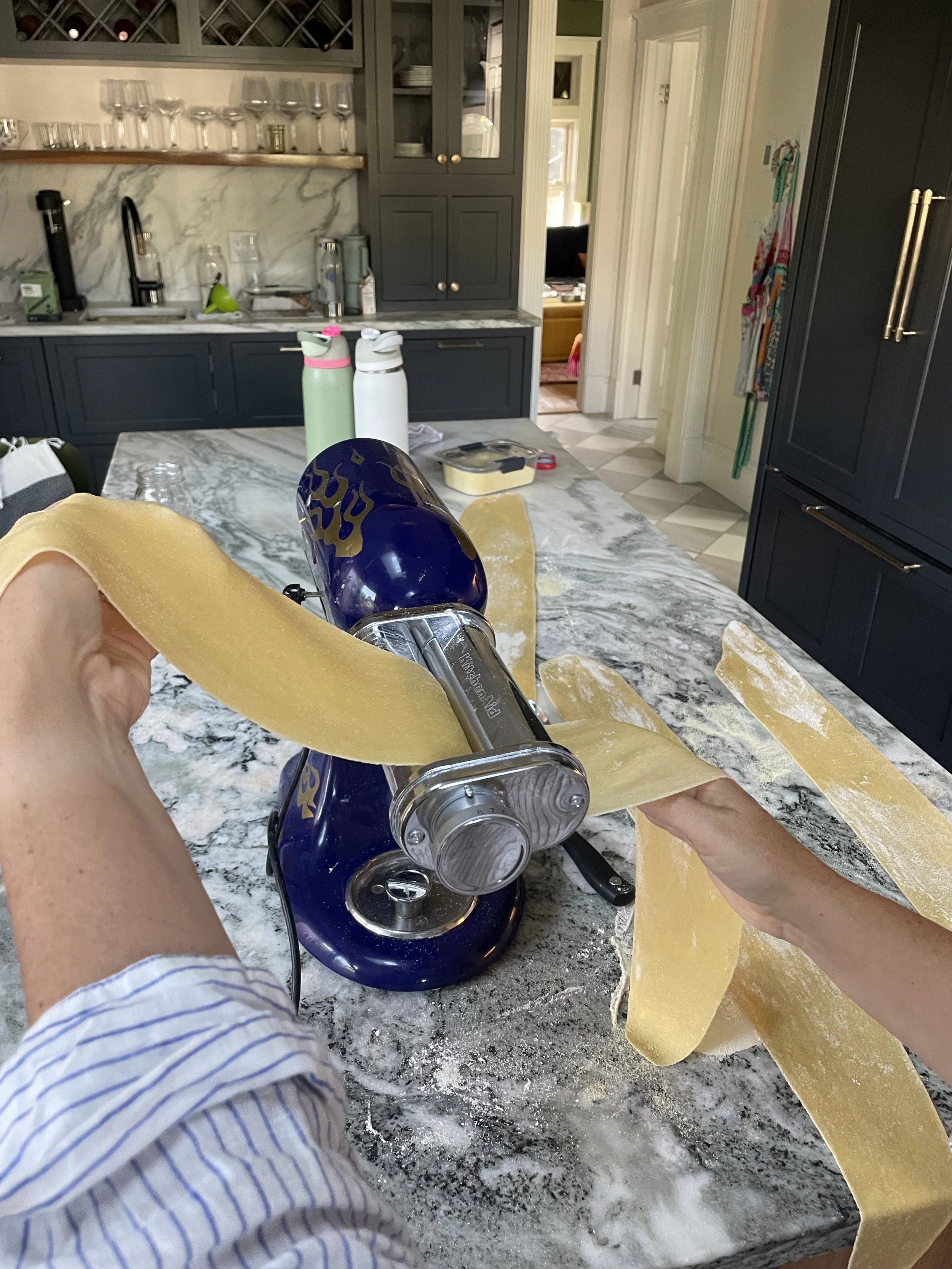 Friday- My youngest is off to sleep away camp with this weekend and requested homemade pasta and pesto. To use up some very ripe peaches, I made this upside peach cake- it turned out wonderfully, recommend!
