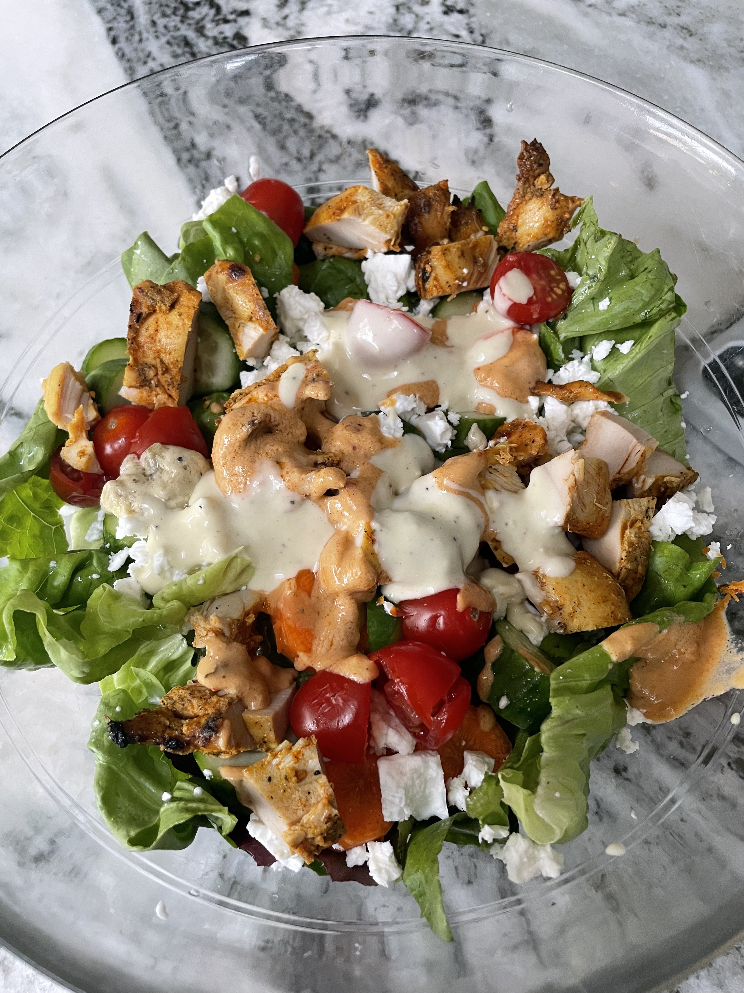 Monday- My oldest made a salad with leftover chicken and pasta.