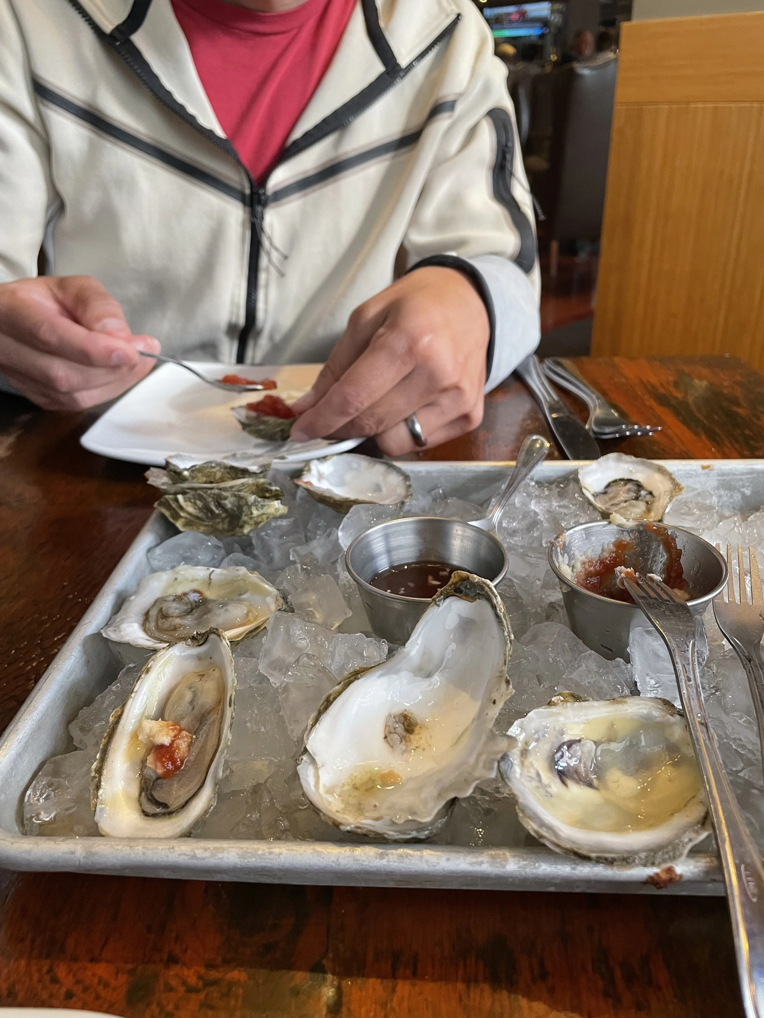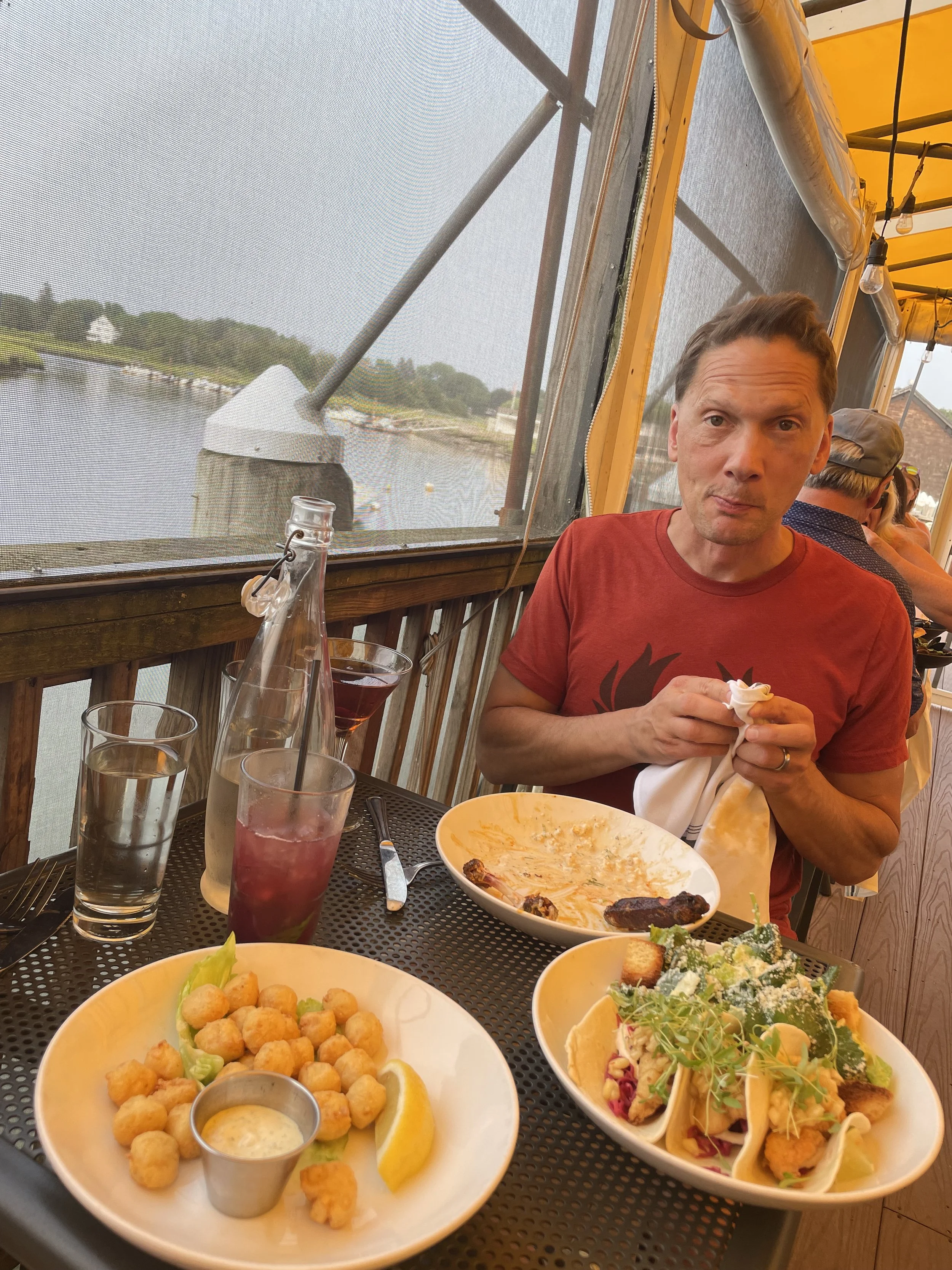Monday - We ate at CK pearl in Essex, MA. I have had this place on my list for a long time and I loved it. Got a few oysters, the wings, fish tacos, and fried bay scallops. Surprisingly the scallops were my least favorite but am so excited to go back and try more. Also fantastic cocktails. My daughter needed dinner in the car so she had chicken caesar salad wraps.