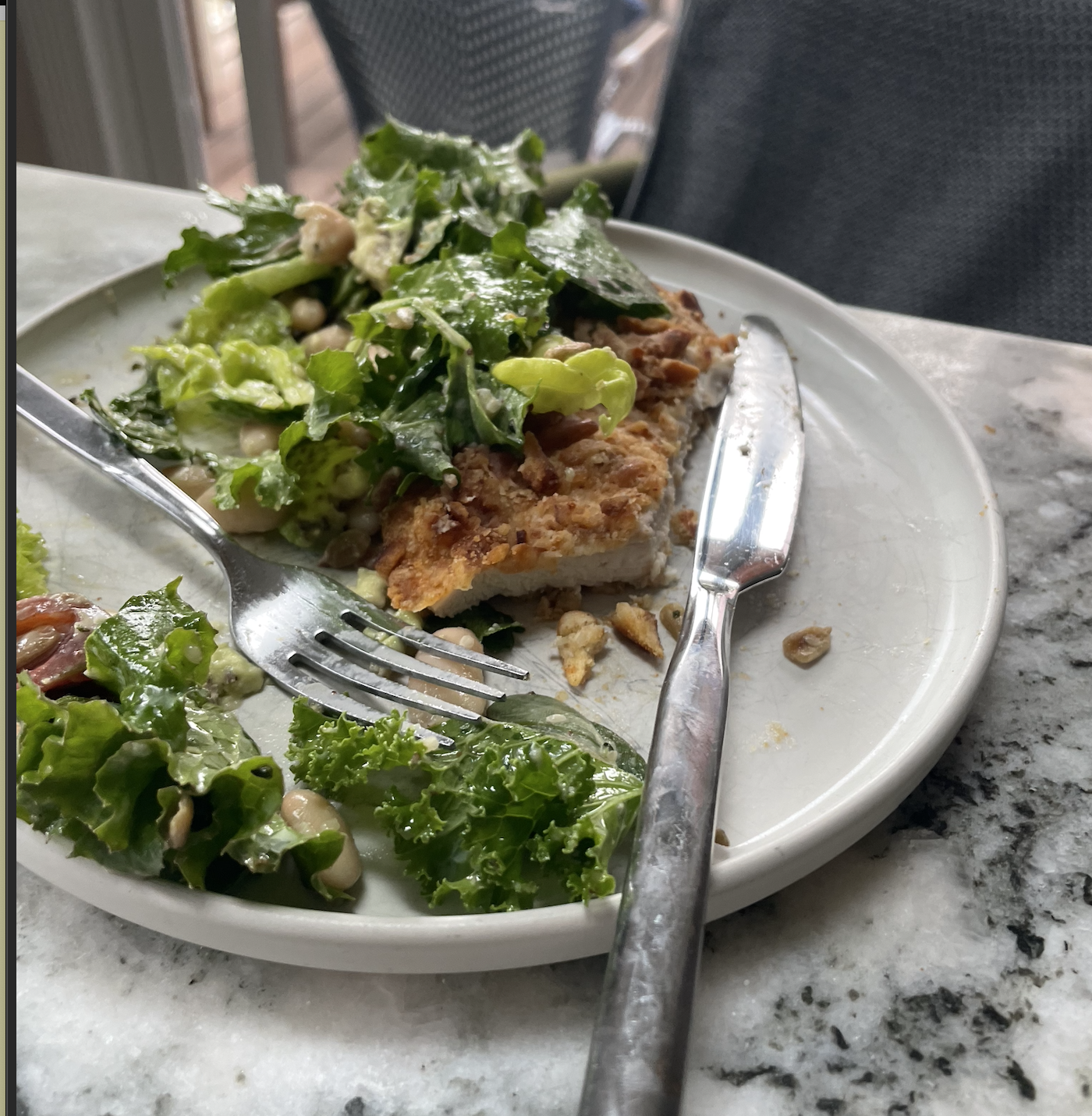 Monday- a divided dinner due to practices etc, so I made breaded chicken cutlet with salad on top.